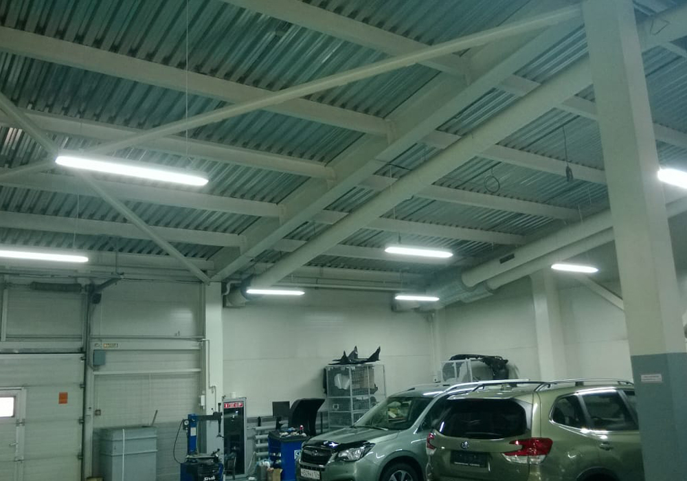 Задача: Освещение зоны для проведения ТО автомобилей. Требуется хорошая освещенность.